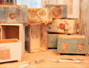 Die Verzierungen variieren, je nach Jahreszeit, Stimmung in mir, Impulsen von Außen und Innen. Alle Kästchen sind Einzelstücke. Alle werden aus Terracotta-Steinzeugton gefertigt und bei 1045 Grad C und 1080 Grad C gebrannt.